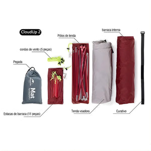 Compacta e funcional, com armazenamento de apenas 40x13cm, a Cloud Up 2 Verde Militar é a companheira ideal para trilhas, montanhas e expedições. Sua estrutura ultraleve em alumínio permite montagem rápida e firmeza superior — mesmo sob vento forte ou terreno irregular.
