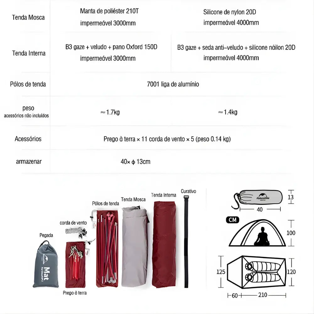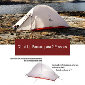 A Naturehike Cloud Up 2 Azul Marinho combina durabilidade e praticidade em um formato ultracompacto. Pesando apenas 1,8kg, foi criada para aventureiros que buscam proteção real sem carregar peso extra. Sua impermeabilidade de 3000mm e estrutura em alumínio 7001 oferecem confiança em qualquer clima ou terreno.