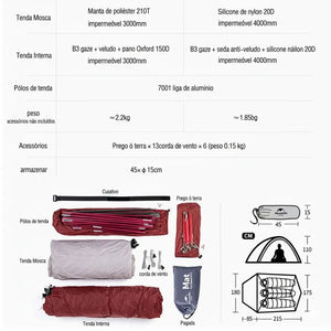 A Naturehike Cloud Up 3 Verde Militar combina tecnologia, leveza e durabilidade para quem busca conforto ao ar livre. Com apenas 2,2kg, é ideal para longas expedições, garantindo montagem rápida, alta resistência e total proteção contra chuva, vento e até neve.