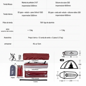 Fabricada com poliéster 210T com silicone e Oxford 150D, a Cloud Up 1 combina ventilação eficiente com isolamento térmico. Seja em montanhas geladas ou acampamentos tropicais, oferece abrigo confiável e confortável em qualquer situação.