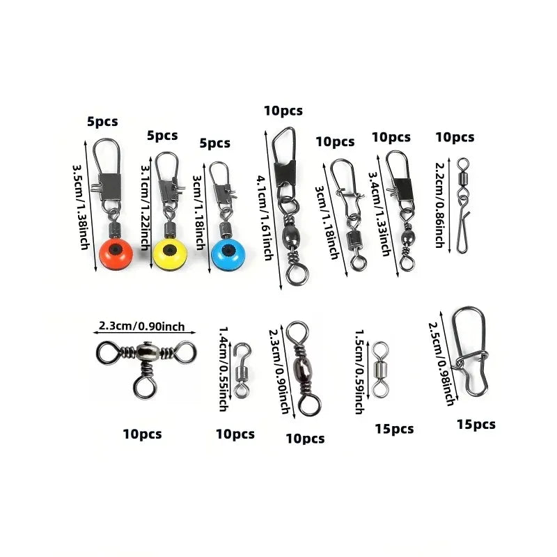 O Kit Giratório de Pesca com 115 Unidades é a solução prática e completa para qualquer pescaria. Com peças variadas de alta resistência, você tem à mão tudo o que precisa para montar suas linhas com agilidade e segurança. Compacto, portátil e durável, é ideal tanto para iniciantes quanto para pescadores experientes que não abrem mão de organização e eficiência.
