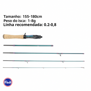 Compacta em 2 seções, a Rancy Carbon Ultralight é ideal para transportar em mochilas e viagens. Disponível nos tamanhos de 1,55m a 1,80m, entrega a flexibilidade perfeita para riachos, lagos, rios e até pescarias costeiras leves.